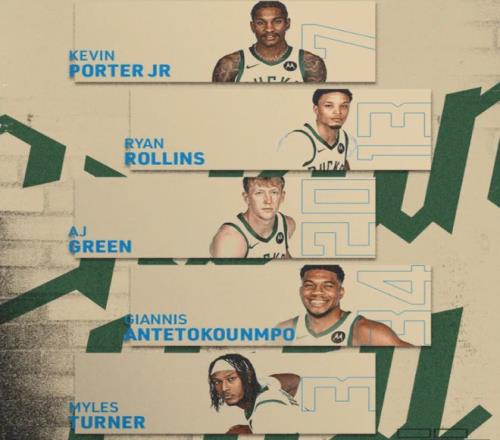 全场数据,雄鹿队这边,字母哥12投7中,三分1中1、罚球9中6空砍21分5篮板1助攻2抢断;小凯文·波特9中0一分未得,正负值-35全场最低。